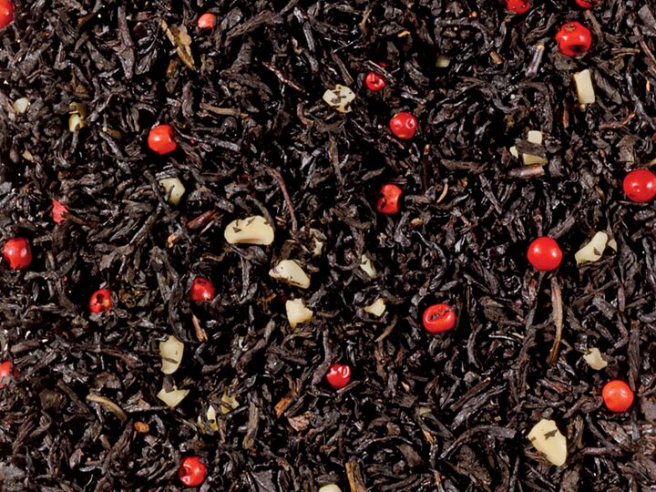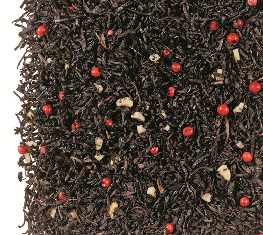 i w tym tkwi sekret naszej kolejnej nowości: czarnej marcepanowej: migdały, płatki czekolady i czerwony pieprz w czarnej herbacie. Dodaj miodu i delektuj się aromatycznym, marcepanowym naparem.