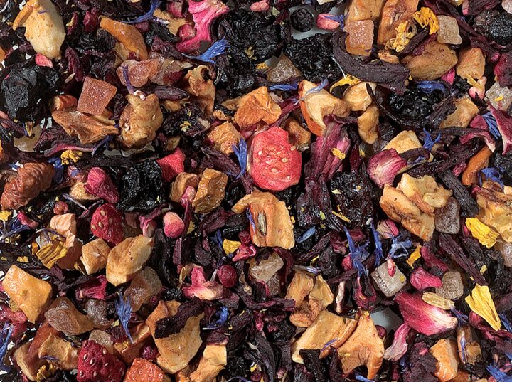 Skład: papaja kandyzowana, jabłko, hibiskus, liofilizowana truskawka i malina, owoce czarnego bzu, czarna porzeczka, płatki kwiatów słonecznika i kukurydzy.